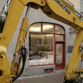 While we had a nice visit from the students from Ädellab/Konstfack they started digging a big hole on the board walk! You could not hear your own voice and the whole Gallery was shaking. It was a new experience... Luckily the pieces on display kept standing and we will get a faster internet.